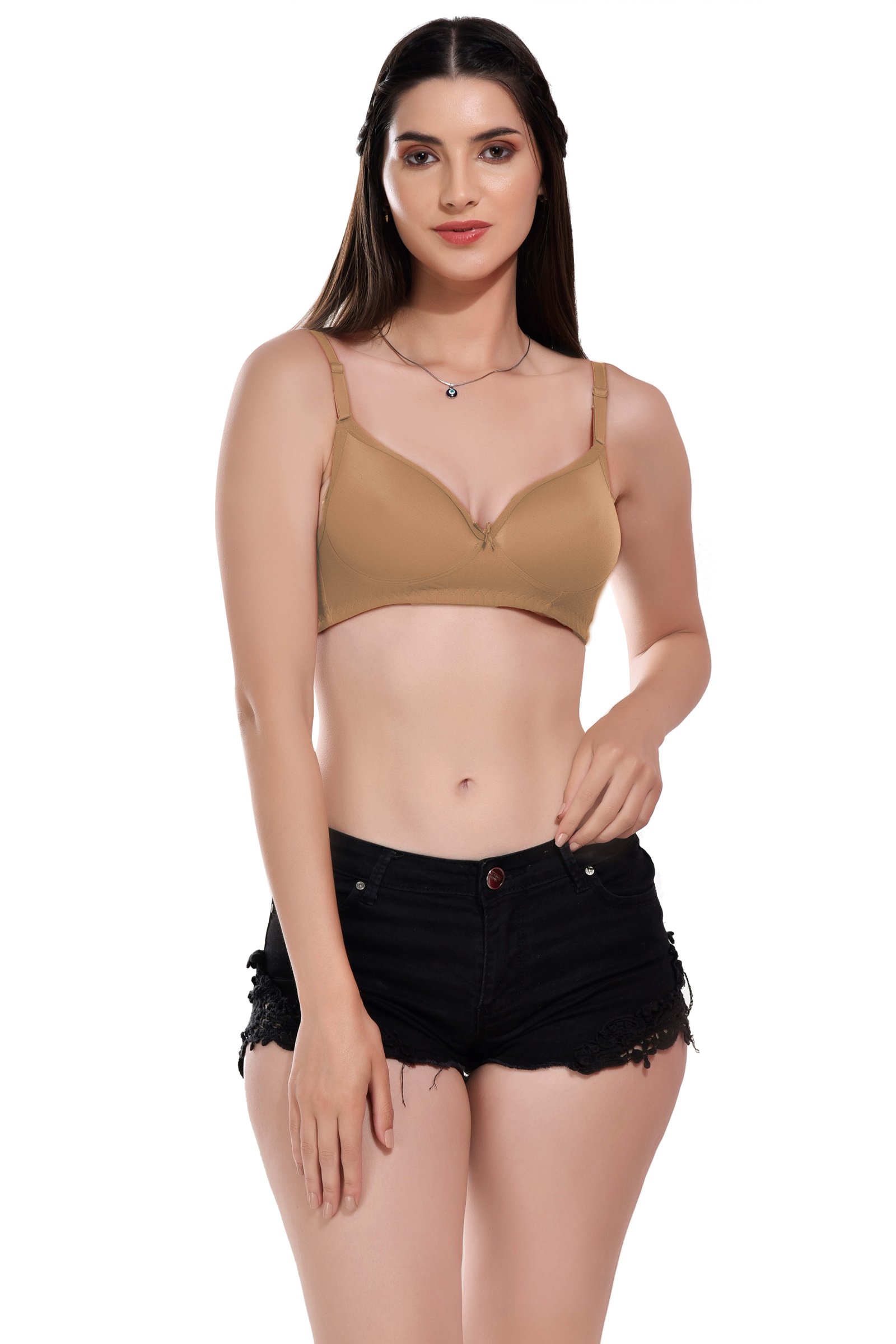 Alishan Padded Non-Wired T-shirt bra is a wardrobe staple. The full-coverage cups ensure no spillage from the top or sides. The cups are non-wired for a comfortable, poke-free experience.
